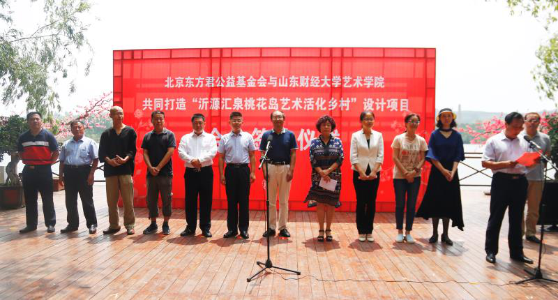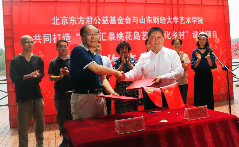 共同打造“沂源汇泉桃花岛艺术活化乡村”设计项目合作签约仪式在淄博市沂源县龙子峪桃花岛举行。山东省政协常委、东方君公益基金会会长董方军、沂源县副县长张莹莹、学校校友会办公室主任耿金波、无码a片