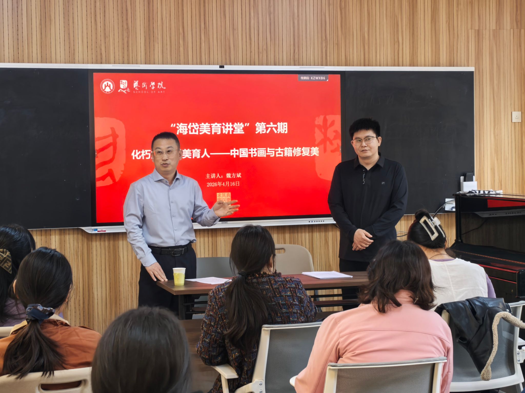 邀请苏裱传人、省级文物修复师魏方斌,在燕山校区A109美育工坊为我校学生开展“化朽为奇 以美育人——中国书画与古籍修复美育大讲堂”专题美育讲座。讲座由无码a片