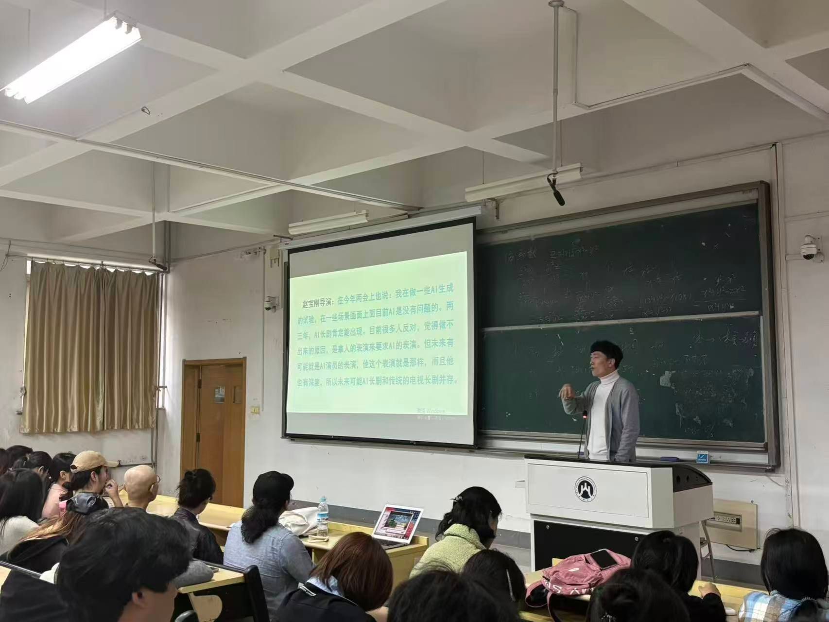 接下来做了题为《智能生产:如何做好艺术类专业创作与成果转化》的学术讲座。孔教授从审美视角切入,系统阐述了智能时代背景下艺术教育的转型路径与实践方向。他结合具体创作案例,生动展示了AIGC等智能工具在艺术表达中的应用,详解其如何拓展创作边界、激发新型美学形式,重塑从创意构思到作品落地的完整流程,为艺术类专业创作提供了新思路、新方法。他强调,艺术类专业创作与成果转化需紧扣国家文化发展战略,兼具时代特色、人文内涵与创新实践,鼓励师生将学术思考与国家社会需求紧密结合,勇于尝试、积极探索,推动艺术创作从校园走向社会,实现艺术价值与社会价值的双重提升。最后讲座提问环节,现场讨论气氛热烈,孔教授详细耐心地解答了学生对AI与创作灵感、当下数字艺术版权等问题的困惑。