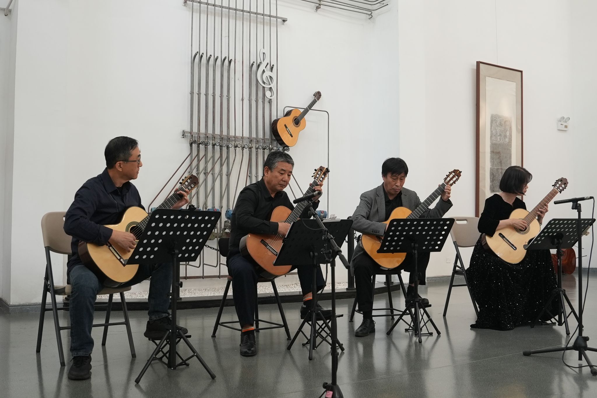 乃至济南东部区域重要的书画文化展示平台。本次跨界将古典吉他与大提琴融入展陈空间,是美术馆在“以美育人、以文化人”理念下的一次跨界探索。通过打造集视觉与听觉于一体的综合性艺术空间,海岱美术馆旨在推动高雅艺术走进校园、融入生活,不断提升师生和公众的审美素养与文化品味。