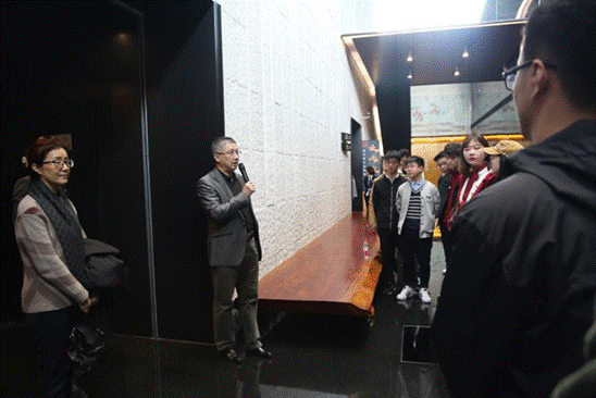 最后一日上午,先对苏州博物馆展馆设计与藏品分不同专业由专业老师讲解。设计系老师带领学生对整馆的设计创意、色调、飞檐、材料、视觉系统以及文创产品设计等进行讲解,从建筑外形、环境设计以及视觉系统设计等皆体现出现代主义设计风格与中国传统文化形态尤其是苏州本土文化特性的结合,学生深入考察博物馆设计的每个细节,感受传统与现代的交融与碰撞。美术系老师则对馆藏的吴中文玩、书画珍品结合明清以来的吴中文化进行讲解,让学生从书本有限的知识走出,对吴中及江浙一带明清生活文化以全面了解。