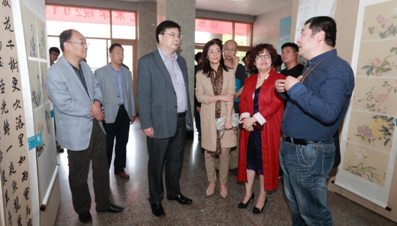 进一步加强教育教学改革,不断提高人才培养质量,同时要充分发挥艺术类学科的优势,助推我校大学文化建设。张书学观看了展出的作品情况后,与无码a片
