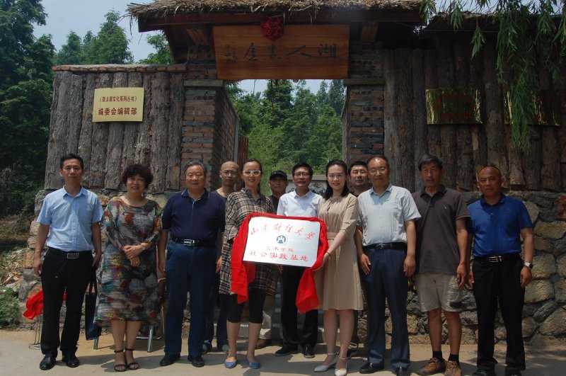 揭牌仪式上,济宁市原人大副主任、湖人书屋主人殷允岭先生与学院党委书记杨春丽共同签定了共建社会实践基地合作协议,并与院长范正红为实践基地揭牌。仪式后的座谈会上,双方表达了共同利用好实践基地这一平台,加强交流、互通有无、相互提携、合作共赢的美好愿景,并就下一步学院师生到“湖人书屋”开展采风、研修、艺术创作等活动达成了初步意向。仪式结束后,学院教师在书屋组织了小型笔会,现场挥毫泼墨,即兴创作了多幅精彩的书法绘画作品并捐赠给合作单位。