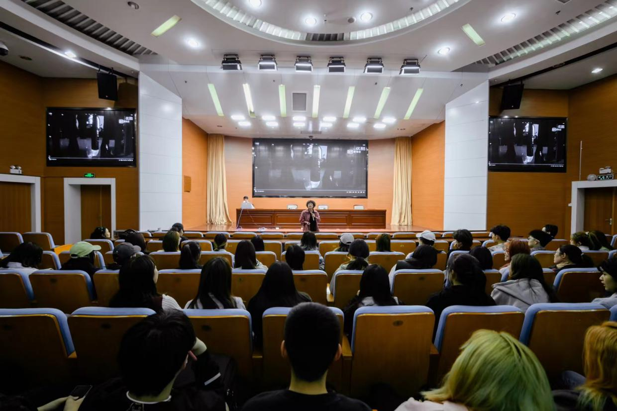 逸夫楼1号报告厅,以“音乐视觉化的通感认知”为题,就设计基础必修课“形式基础”课程中的的音乐理解部分进行了专题讲座并对此课程的课程思政建设给出指导意见。