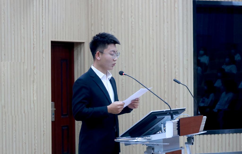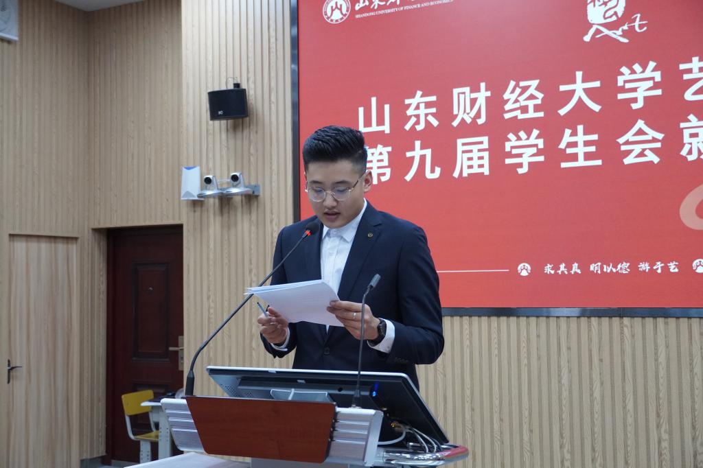 会议伊始,团委书记史萌宣读第九届学生会成员名单。随后,第八届学生会主席刘永昌发言,对上一届学生会工作进行汇报,向第九届学生会提出了工作建议,并表达祝愿;第九届学生会主席杨朝政发言,做出了对于未来学生会的工作设想。紧接着,与会同学以积极的精神面貌与热情完成了学生会成员集体宣誓。