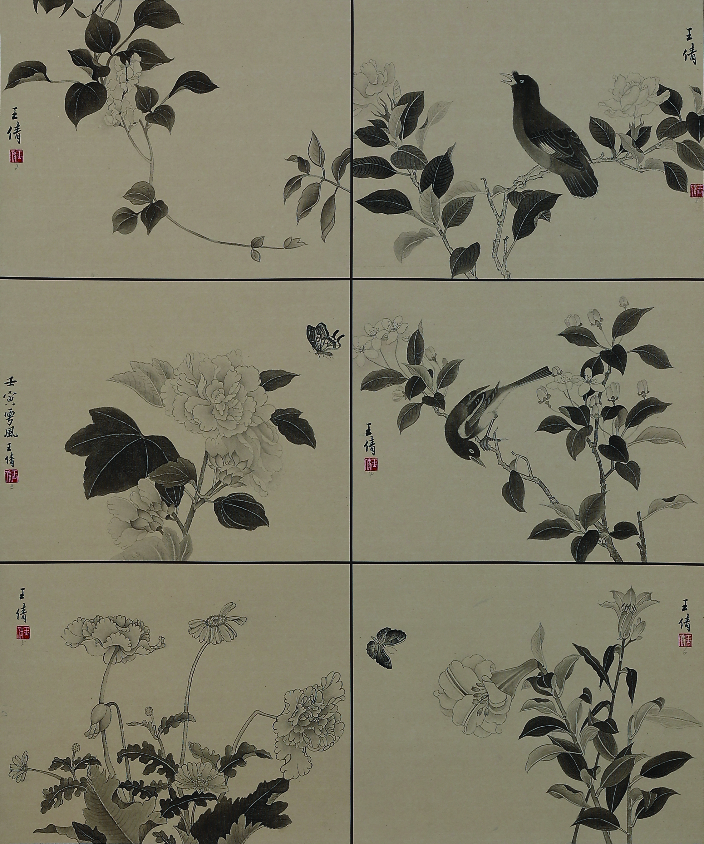 整幅六副小品山水,寻明人之笔意,描绘了优美宁静的中国古代田园风光。山水小品是中国山水画的重要品类之一,它小中见大,它代表了古代文人的精神追求,又抒发其闲情雅致之心。小品画具有“尽精微,致广大”的特点。