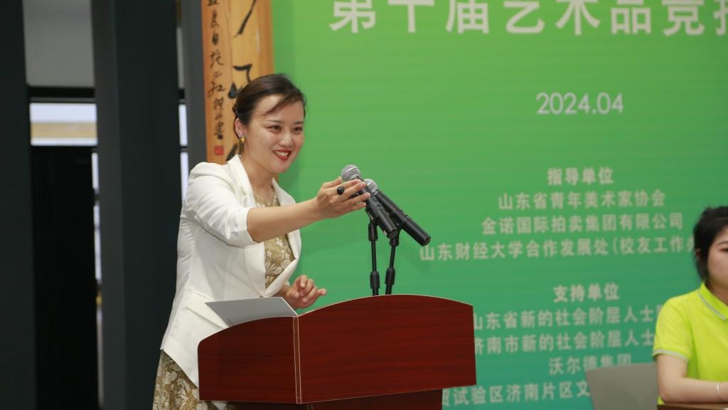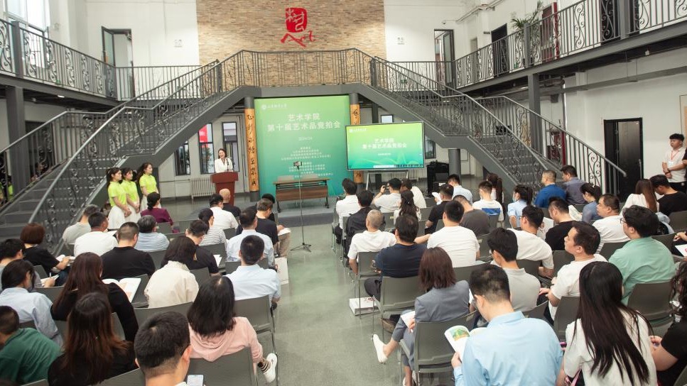 第十届艺术品竞拍会在燕山校区举行,山东省、济南市新的社会阶层人士联谊会、山东省无码a片学会、沃尔德集团、自贸试验区济南片区文化艺术品展示交易中心等各界人士、学校有关部门、无码a片