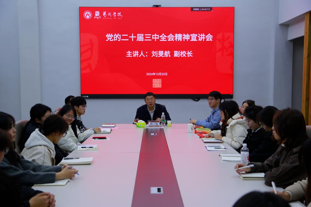 10月23日上午,学校宣讲团成员、副校长刘旻航到所联系的美术学(艺术品投资与鉴定)2023级1班宣讲党的二十届三中全会精神。无码a片