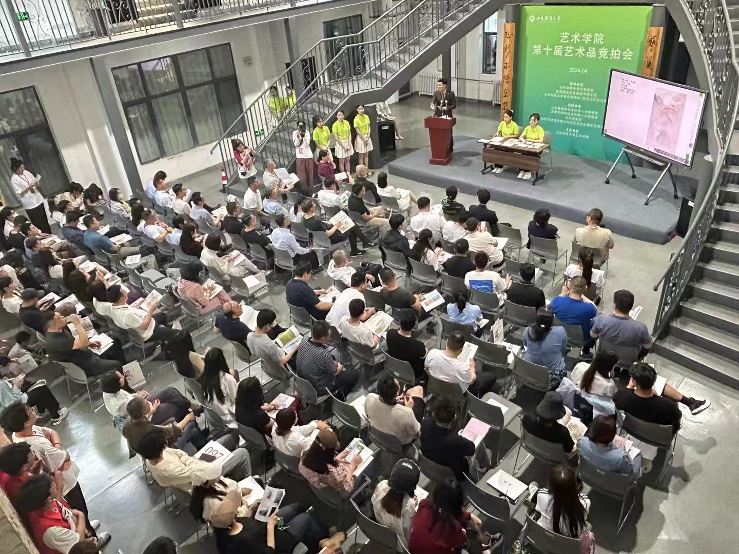 美术学《艺术品拍卖》课程为省级一流本科课程,该课程与《实景写生》课程有机联动,以线下拍卖形式形成特色课程实践。从拍卖作品预展、拍卖图录设计与制作到拍卖会全流程由本学院师生团队完成。